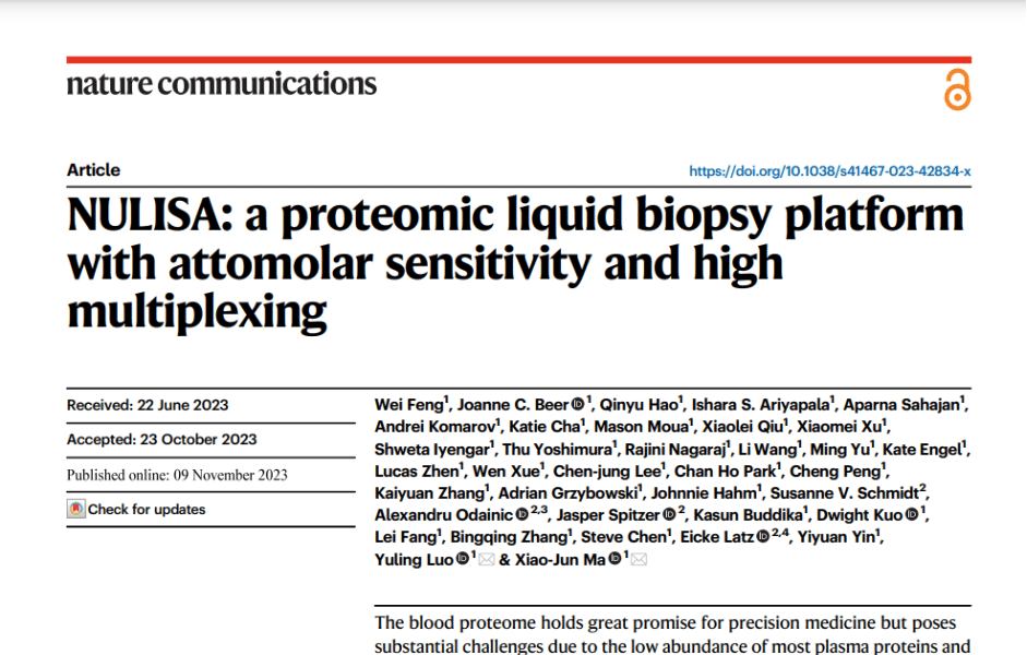 The NULISA platform uses a proprietary sequential immunocomplex capture and release technique to improve the sensitivity of traditional proximity ligation assays by over a thousand-fold to attomolar levels – allowing for highly quantitative measures of low-abundance proteins that are not amenable to mass spectrometry measure.